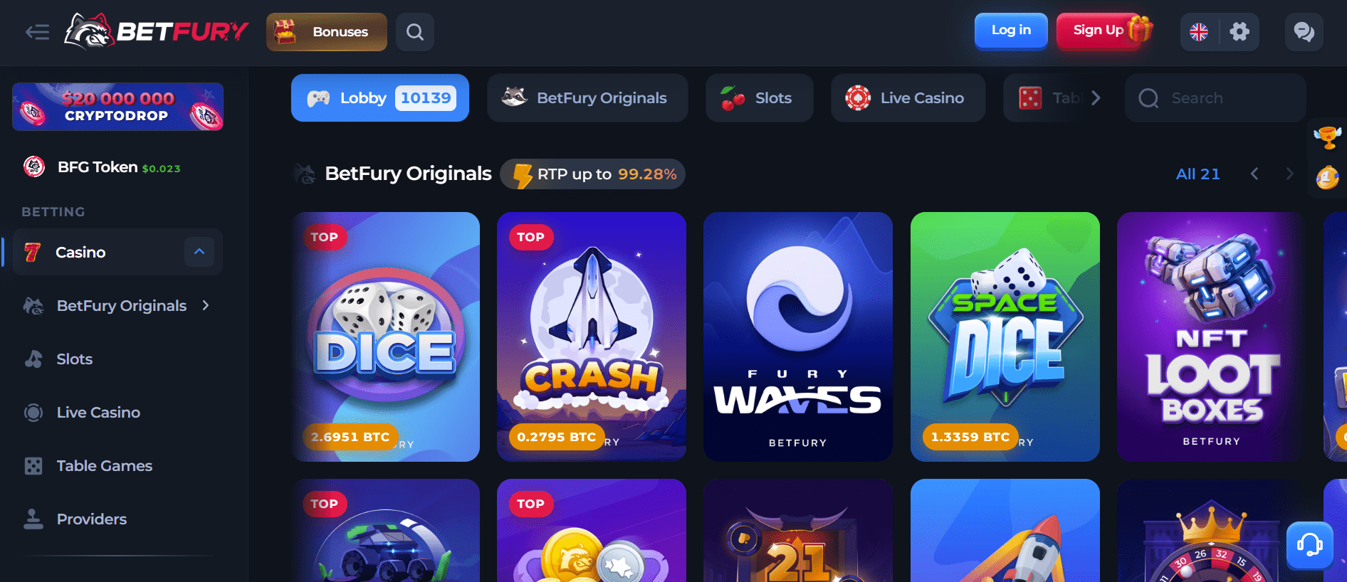 BetFury Casino is an online cryptocurrency gambling platform featuring over 5000 games. The platform is completely licensed and overseen by the Government of Curacao and implements all measures needed to safeguard your online information. You can access the online casino directly through your web browsers or by using the latest smartphones and tablets for mobile convenience. The website offers multiple languages, which you can find by using the left menu and scrolling down to the page’s footer.